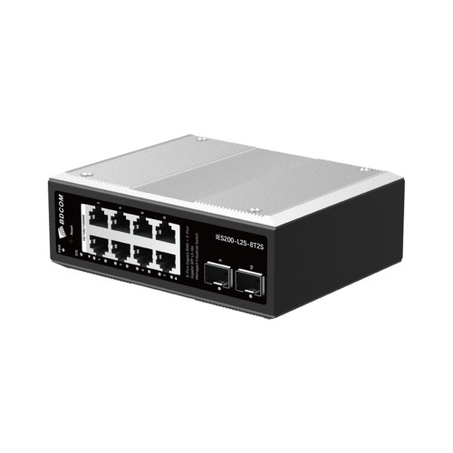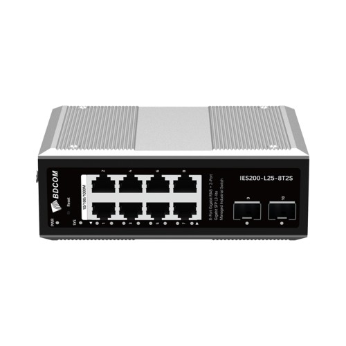 Коммутатор, BDCOM, IES200-L25-8T2S, Управляемый L3-lite, 8 портов 10/100/1000 RJ45, 2 порта SFP, DC 12-55В Dual RPS, вход DC12V, -40+75°C, DIN-rail