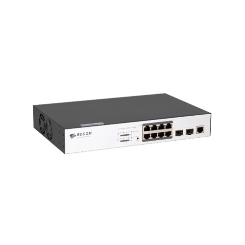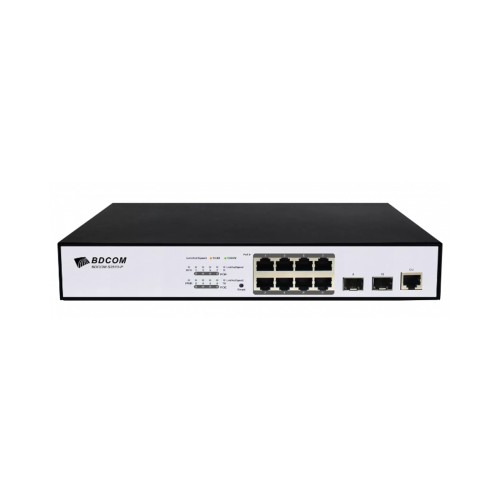 Коммутатор, BDCOM, S2510-P, Управляемый L2, 8 портов PoE (130W) 10/100/1000M RJ45, 2 порта 100/1000М SFP, Стоечный