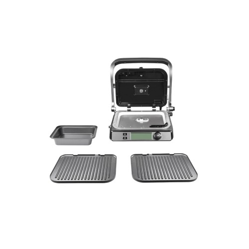 Гриль, Redmond, SteakMaster GM301, 7 программ, Температура нагрева 70-230 °C, Открытие на 180°, Антипригарное покрытие, Размер рабочей поверхности 31.3 х 24.4 см, Электронное управление, Съемные пластины, Серый/металл
