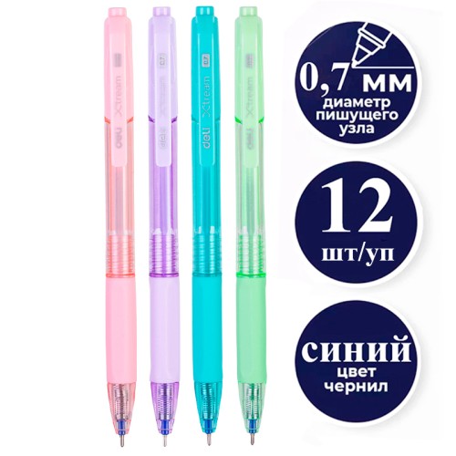 Ручка шариковая DELI "Every Q41" автоматическая, 0,7 мм, синяя, грип, корпус ассорти 044-Q41BL